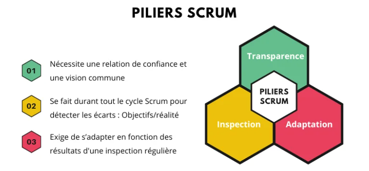 Notre démarche Agile s’inscrit dans le cadre de la méthodologie Scrum qui repose sur trois piliers :